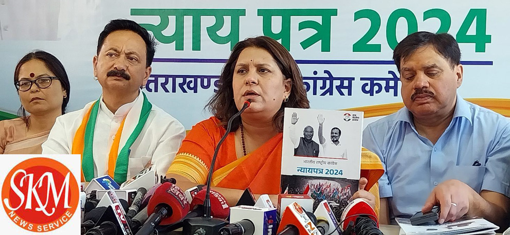 देहरादून, 7 अप्रैल। आज प्रातः 11ः30 बजे प्रदेश कांग्रेस कमेटी कार्यालय राजीव भवन राजपुर रोड़ देहरादून में पत्रकार वार्ता में अखिल भारतीय राष्ट्रीय कांग्रेस की सोशल मीडिया चेयरमैन और राष्ट्रीय प्रवक्ता सुप्रिया श्रीनेत ने कांग्रेस के घोषणा पत्र “न्याय पत्र” पर कहा की ये घोषणा पत्र कमरे में बैठकर पूंजी पतियों की लिस्ट पर नहीं बना है, यह घोषणा पत्र कुछ विशेषज्ञ या जानकारों से बात करके नहीं बना है। यह घोषणा पत्र इस देश की आवाज है इसकी जो वेबसाइट है उसका नाम भी है “आवाज भारत की।” और यह घोषणा पत्र भारत जोड़ो यात्रा और भारत जोड़ो न्याय यात्रा के दौरान जिन करोड़ों करोड़ लोगों से हम इस देश के मिले जिनकी आशाओं को, अपेक्षाओं को, आकांक्षाओं को और आशंकाओं को भी, उनके दुख,कष्ट और तकलीफों को भी हमने सुना यह उसका प्रतिबिंब है। इस घोषणा पत्र के पांच प्रमुख बिंदु है नारी न्याय, युवा न्याय, किसान न्याय, श्रमिक न्याय और हिस्सेदारी न्याय। 10 साल से देश बहुत सारी परेशानियां झेल रहा है और उन सारी परेशानियों का इस घोषणा पत्र में समाधान है।