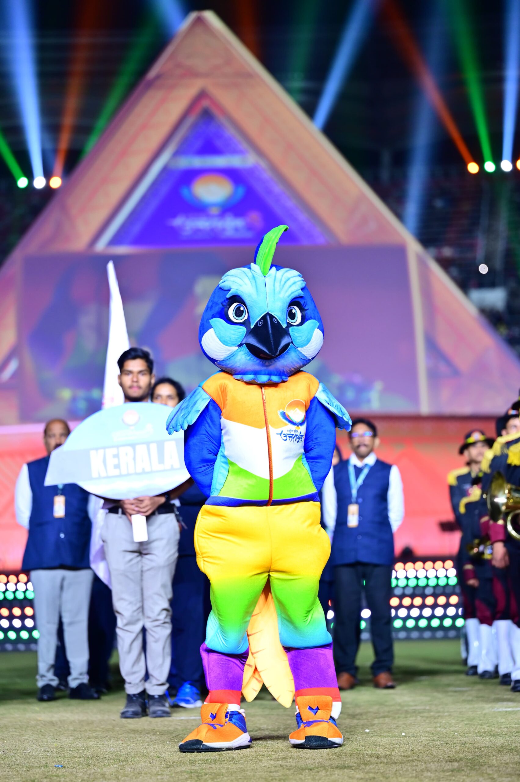 राज्य पक्षी मोनाल मौली के रूप में शुभंकर। मशाल का तेजस्विनी नाम।