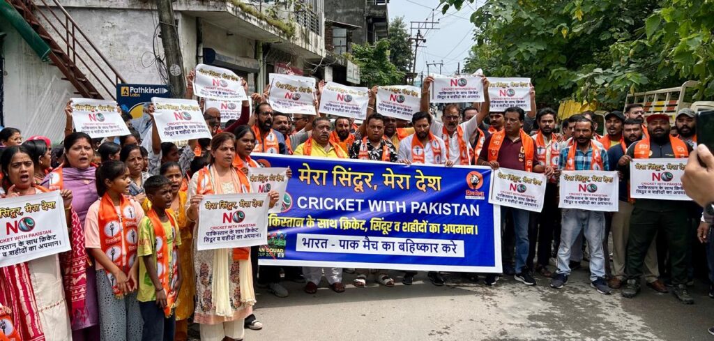 देहरादून 14 सितम्बर। आज शिव सेना उत्तराखंड ईकाई द्वारा शिव सेना राष्ट्रीय नेतत्व के आह्वान पर भारत पाक क्रिकेट मैच के बहिष्कार की मांग को लेकर शिव सेना मुख्यालय पर रोष प्रकट किया। प्रधान मंत्री को ऑपरेशन सिंदूर याद दिलाने के लिए प्रदर्शन के बाद शिव सैनिकों ने घर-घर से सिंदूर एकत्रित कर प्रधान मंत्री कार्यालय भेजा। इस अवसर पर शिव सेना राज्य प्रमुख गौरव कुमार ने कहा कि 22 अप्रैल 2025 को पहलगाम ने नरसंहार हुया जिसमे 27 लोगो की जान गई, उस समय केंद्र सरकार द्वारा ऑपरेशन सिंदूर चलाया गया, जिसमे पाकिस्तान से सभी रिश्ते ख़त्म करने की बात की गई, परंतु आज वही केंद्र सरकार उसी आतंकवाद को पालने वाले पाकिस्तान के साथ क्रिकेट मैच खेल रही है। गौरव कुमार ने कहा कि भारत पाक मैच उन 26 परिवारों एंव ऑपरेशन सिंदूर में शहीद हुए देश के जवानों का अपमान होगा। केंद्र सरकार को 140 करोड़ देशवासियो की भावनाओ की क़दर करनी चाहिए। प्रदेश उपप्रमुख पंकज तायल ने कहा कि 22 अप्रैल को पहलगाम में हुई आतंकी हमले के बाद यह मैच खेलना उचित नहीं है। पूरी दुनिया जानती है की पाकिस्तान आतंकवादी गतिविधियों का संचालन करता है , ऐसे में पाक के साथ क्रिकेट मैच खेलना निंदनीय है, प्रधान मंत्री को इसे रोकना चाहिए। जिला प्रमुख अमित कर्णवाल ने कहा कि 26 महिलायो ने अपना सुहाग को खोया है, पाक के साथ खेलने में उनकी आत्मा को गहरी ठेस लगेगी। प्रधानमंत्री को पाकिस्तान के ख़िलाफ़ खेलने के बजाय 26 शोकाकुल परिवारों के समर्थन में मैच रद्द करना चाहिए। इस अवसर पर जिला उपप्रमुख शिवम गोयल, जितेंद्र निर्वाल, वासु गौरव कुमार, विकास मल्होत्रा, रोहित बेदी, मनोज सरीन, अमित बजाज, किशन गोपाल, मनमोहन साहनी, राज नेगी, फरीद अली, अमित डिमरी, गौरव कलानी, गोकुल परविंदा, इक्विन्द्र सिंह, अक्षय महंद्रू, जयंत चड्ढा, सुमित गंभीर, अक्षय शर्मा, कविता आहूजा, दीपाली बेदी,निधि बजाज ,आकाश अग्रवाल, रवि ग्रोवर, उमेश सिंह, रजनीश गर्ग, विजय गुलाटी, मनिंदर सिंह, देव सिंह, कृष्णा बेदी, रवि गुप्ता , लक्ष्य बजाज, विकास सिंह, रोहित गर्ग, देव बेदी आदि मौजूद रहे।