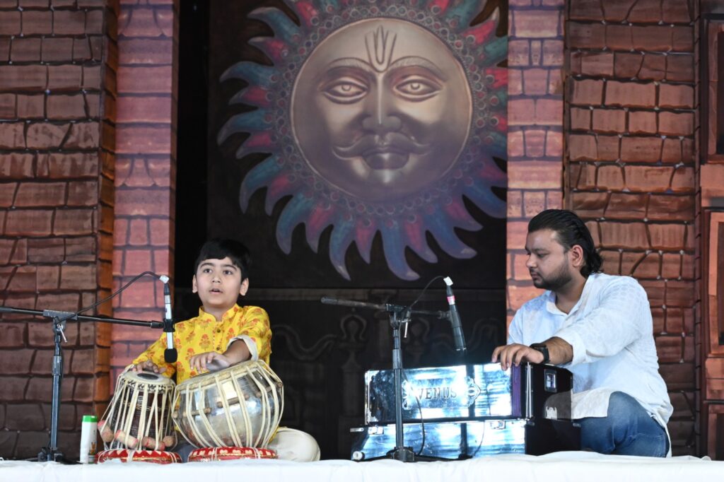 देहरादून,9 अक्टूबर। विरासत साधना में गुरुवार को भिन्न-भिन्न अनेक स्कूली बच्चों द्वारा वाद्य संगीत पर की गई आकर्षक एवं शानदार प्रस्तुतियों से निकले भक्ति रस ने सभी को आनंदित कर डाला। विरासत महोत्सव की आज की विरासत संध्या में प्रतिभाग करने वाले भिन्न-भिन्न स्कूलों के बच्चों ने अपनी प्रतिभाओं का शानदार प्रदर्शन करके सभी का दिल जीत लिया। वाद्य संगीत से विरासत साधना का पंडाल मधुर और सौम्या हुआ। स्थानीय डॉ. भीमराव अंबेडकर स्टेडियम में आयोजित किए जा रहे विरासत महोत्सव की सुबह की पारी में नियमित रूप से हो रही विरासत साधना में आज जिन प्रतिभावान बच्चों ने प्रतिभाग किया, उनमें कई बच्चों ने बहुत ही शानदार भारतीय संगीत का प्रदर्शन किया I इस अवसर पर देहरादून के विभिन्न प्रतिष्ठित विद्यालयों और संस्थानों से आए विद्यार्थियों ने अपनी वाद्य कला से सभी का मन मोह लिया। प्रत्येक विद्यार्थी ने अपने गुरुजनों और सहयोगियों के साथ मिलकर सुंदर वाद्य प्रस्तुति दी, जिससे वातावरण सुरमय और आनंदमय बना। विरासत साधना में प्रतिभागी बने इन बच्चों में क्रमशः दून यूनिवर्सिटी से तबला वादक अनिरुद्ध नौटियाल उनके साथ रहे राघव शर्मा,सेंट कबीर एकेडमी से तबला वादक लवकेश प्रकाश उनके साथ रहे अमन निराला, इसी श्रृंखला में क्रमवार पीवाईडीएस लर्निंग एकेडमी से दिपांशु गौर (पखावज) साथ में दीपक कुमार भारद्वाज, तरुण संगीत एवं विचार मंच से आए अभिनव पोखरियाल (तबला) साथ में राघव शर्मा, दून वैली पब्लिक स्कूल के विनायक भारद्वाज (सितार) साथ में दीपक कुमार भारद्वाज मैं अपनी शानदार प्रस्तुतियां देकर सभी का मन मोह लिया। इसके अलावा दून इंटरनेशनल स्कूल के होनहार छात्र मनवीर सिंह ने भी तबले पर तीन ताल का राग देकर सभी को मग्न मुग्ध कर दिया। यही नहीं, द एशियन स्कूल देहरादून से सुखप्रीत सिंह (तबला) साथ में अन्वेश कांत, द ओएसिस से अक्षज गोयल (तबला) साथ में श्विभुषित सिंह, शिक्षणकुर द ग्लोबल स्कूल से विहान जोशी (तबला) साथ में राघव शर्मा, सुरेंद्र संगीत विद्यालय समिति से माही सिंह साथ में राघव शर्मा तथा फाइलफॉट पब्लिक स्कूल से अदिति वर्मा साथ में सार्थक कुमार की प्रस्तुति से विरासत साधना में मधुरलय छाई रही। तत्पश्चात विरासत साधना की भक्ति रस में डूबी हुई इस शानदार प्रस्तुति में प्रतिभाग करने वाले सभी प्रतिभावान प्रतिभागियों को विरासत रीच संस्था संयुक्त सचिव वह मुख्य आयोजक विजयश्री जोशी ने सम्मानित किया। विजय श्री जोशी द्वारा सभी प्रतिभाशाली बच्चों का उत्साहवर्धन वर्धन किया गया। उनके उत्साहवर्धन और सराहना के अनमोल शब्दों ने कार्यक्रम को और खास बना दिया, जिससे यह सुबह संगीत, परंपरा और प्रतिभा का एक यादगार उत्सव बन चुकी है।