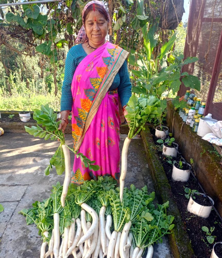 वर्ष 2023 में, ग्रामोत्थान परियोजना के नियमों एवं मानदंडों के अनुसार, श्रीमती बिछना देवी को व्यक्तिगत उद्यम – सूक्ष्म सिंचाई गतिविधि के लिए चयनित किया गया। इस उद्यम की कुल लागत रूपए 50,500/- रही, जिसमें रूपए 25,250/- बैंक ऋण, रूपए 10,250/- उनका व्यक्तिगत अंशदान तथा रूपए 15,000/- REAP सहायता के रूप में प्राप्त हुए। बिछना देवी ने इस उद्यम के तहत सब्जियों का उत्पादन प्रारंभ किया और वर्तमान में वह मनसूना एवं उखीमठ के क्षेत्रीय बाजारों में अपनी सब्जियां बेच रही हैं। इस गतिविधि से उन्हें वार्षिक रूपए 70,000/- से रूपए 80,000/- तथा मासिक रूपए 6,000/- से रूपए 7,000/- तक की आय प्राप्त हो रही है। उनकी सफलता से प्रेरित होकर क्षेत्र की अन्य महिलाएं भी सूक्ष्म सिंचाई तकनीक अपनाने के लिए आगे आ रही हैं। अब बिछना देवी अपने कृषि उत्पादों का मूल्यवर्धन करने तथा स्थानीय स्तर पर रोजगार सृजन हेतु अचार, पापड़ निर्माण एवं आटा चक्की जैसे छोटे पैमाने के खाद्य प्रसंस्करण इकाइयों की स्थापना की योजना बना रही हैं।