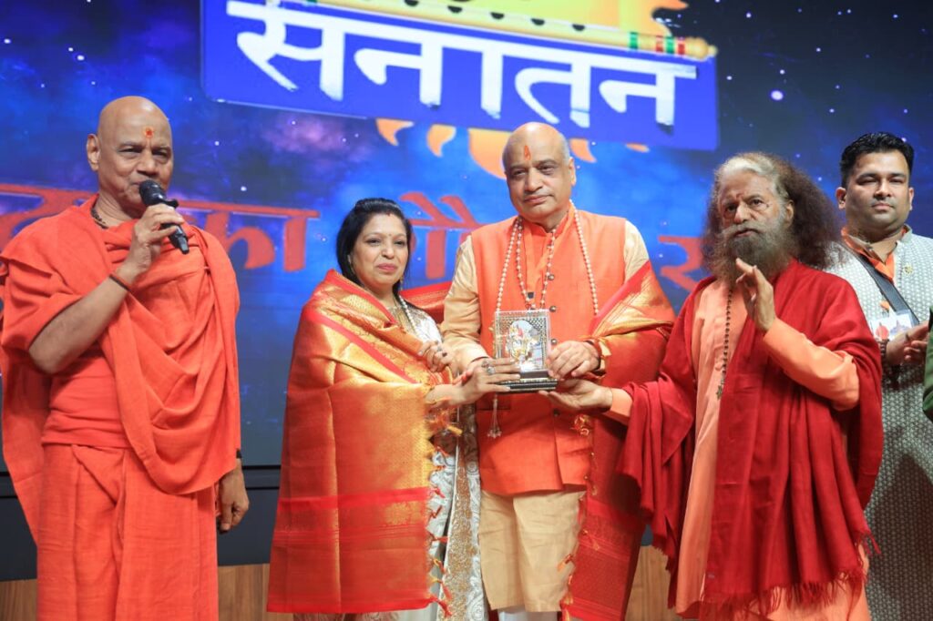 नई दिल्ली/ऋषिकेश, 15 नवम्बर। भारत मंडपम, प्रगति मैदान, नई दिल्ली में आयोजित सनातन संत सम्मेलन 2025 ने भारत की आध्यात्मिक विरासत, सांस्कृतिक चेतना और राष्ट्रधर्म को विश्वमंच पर नई ऊँचाइयों पर स्थापित किया। ओम सनातन न्यास द्वारा आयोजित यह भव्य सम्मेलन, सनातन संस्कृति के पुनर्जागरण, समरस समाज और नैतिक राष्ट्रनिर्माण का सशक्त उद्घोष है। सनातन संत सम्मेलन-2025 में देश के 300 से अधिक पूज्य संत, प्रमुख धर्मगुरु, विद्वान, वैज्ञानिक, ब्यूरोक्रेट्स, विचारकों एवं अनेकों संस्थाओं ने सहभाग किया। इस कार्यक्रम का उद्देश्य सनातन संस्कृति का संरक्षण, संवर्धन और पुनर्जागरण करना है। इस अवसर पर एकल अभियान, भारत लोक शिक्षा परिषद, गीता परिवार, अखिल भारतीय अग्रवाल सम्मेलन, भारतीय संस्कृति वैश्विक न्यास एवं सिद्धपीठ श्री बाबा धाम को सम्मानित किया गया।