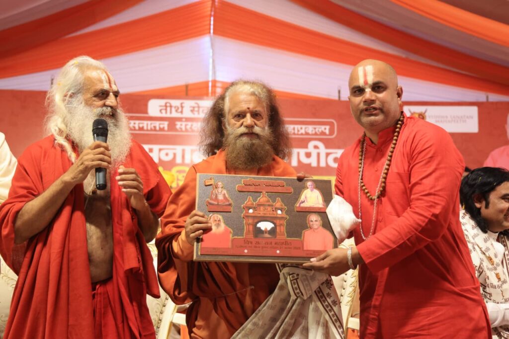 स्वामी जी ने कहा कि विश्व सनातन महापीठ आने वाले समय में भारत की आध्यात्मिक शक्तिपुँज, सांस्कृतिक राजधानी और वैश्विक नेतृत्व का सर्वोच्च केन्द्र बनकर उभरेगा। यह आयोजन केवल एक परियोजना की शुरुआत नहीं, बल्कि नए युग की जागृति है। भूमि पूजन वैदिक मंत्रों, अनुष्ठानों, दिव्य संगीत और संतों की वाणी के साथ सम्पन्न हुआ। देशभर से आए संतों, भक्तों और विभिन्न संस्थाओं के प्रतिनिधियों ने इस प्रकल्प को युग परिवर्तन की शुरुआत बताते हुये कहा कि एक ऐसा युग, जहाँ सनातन फिर से विश्व का पथप्रदर्शक बनेगा। इस भव्य संकल्प में बाबा हठयोगी जी महाराज, तीर्थाचार्य राम विशाल दास जी और महंत ओमदास जी का असाधारण तप, एकाग्रता और समर्पण प्रतिष्ठित है। उनकी वर्षों की साधना और अविरत सेवा का परिणाम है कि आज यह महास्वप्न रूप लेना आरम्भ कर चुका है। इस अवसर पर परमार्थ निकेतन के अध्यक्ष स्वामी चिदानन्द सरस्वती जी, अखाड़ा परिषद् के अध्यक्ष, महंत श्री रविन्द्र पुरी जी, जगद्गुरू ब्रह्मर्षि कुमारस्वामी जी, स्वामी ब्रह्मेशान्द आचार्य, पायलट बाबा आश्रम, स्वामी श्री रामविशाल दास जी, योगमाता केको अइकावा जी, परमाध्यक्ष, गौरी गोपाल आश्रम, वृंदावन, श्री डा अनिरूद्धाचार्य जी, परमाध्यक्ष, श्री देवकीनन्दन ठाकुर जी, श्री पुण्डरीक जी, श्री शिवाकान्त, स्वामी सच्चिदानन्द जी, परमाध्यक्ष, भारतीय हिन्दू शुद्धि सभा, श्री करौली सरकार महादेव जी, गोस्वामी सुशील जी, श्री अश्वनी उपाध्याय जी, वरिष्ठ अधिवक्ता, सर्वोच्च न्यायालय, वरिष्ठ अधिवक्ता श्री विश्व शंकर जैन जी, आचार्य सुमेधा जी, परमाध्यक्ष, कन्या गुरूकुल चोटीपुरा, श्री विष्णु शंकर जैन जी, अधिवक्ता, सर्वोच्च न्यायालय, महामंडलेश्वर श्रद्धा माता जी, पायलट बाबा आश्रम, म म चेतना माता जी, पायलट बाबा आश्रम एवं अनेकोनेक पूज्य संत, वैष्णव संतों का पावन सान्निध्य प्राप्त हुआ। निवेदक डा गौतम खट्टर, उपाध्याय जी, श्री ए के सोलंकी जी, उपाध्याय, श्री शिशिर चैधरी जी, श्री राजेश कुमार जी, श्री अमरीश त्यागी जी, कोषाध्यक्ष और अन्य विभूतियों का मार्गदर्शन व संरक्षण प्राप्त हुआ।