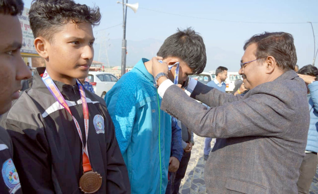 चम्पावत, 01 दिसंबर। मुख्य सचिव, उत्तराखण्ड शासन श्री आनन्द बर्द्धन ने आज चम्पावत जनपद की उभरती खेल प्रतिभाओं को उनके उत्कृष्ट प्रदर्शन हेतु सम्मानित किया। इस अवसर पर विभिन्न राष्ट्रीय प्रतियोगिताओं में उत्कृष्ट उपलब्धि प्राप्त करने वाले खिलाड़ियों एवं कोच को मेडल एवं शॉल ओढ़ाकर सम्मानित किया गया तथा उनके उज्ज्वल भविष्य की कामना की। मुख्य सचिव ने चम्पावत की उभरती (नेशनल) प्रतिभाओं को सम्मानित करते हुए प्रिंस खोलिया (ब्रॉन्ज मेडल), दीपांशु जोशी (सिल्वर मेडल), अक्षत बोहरा (ब्रॉन्ज मेडल), अंशिका धामी (नॉर्थ इंडिया गोल्ड मेडल) और हर्षित थापा (जूनियर नेशनल ब्रॉन्ज मेडल) को एक साथ सम्मानित किया। इसके साथ ही अर्जुन सिंह एवं तुषार भट्ट को विद्यालय स्तर से नेशनल प्रतियोगिताओं हेतु चयनित होने पर सम्मानित किया गया।