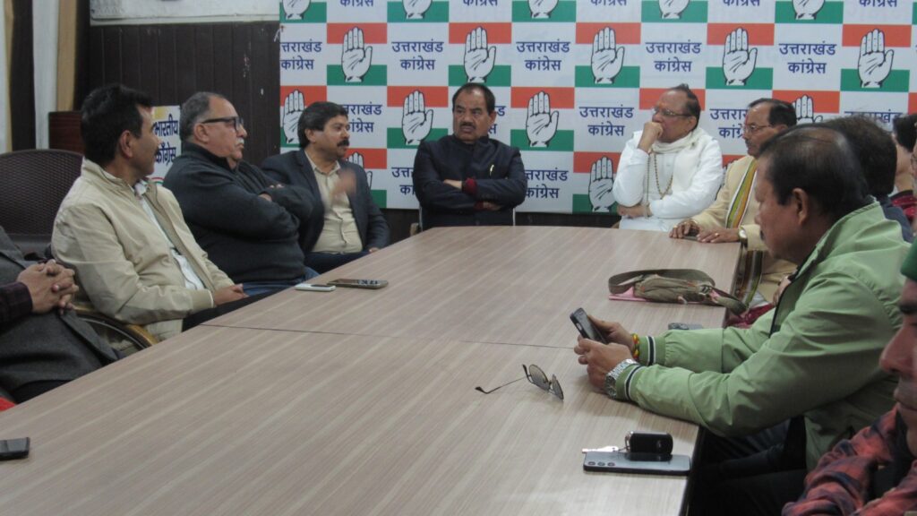 देहरादून, 4 दिसम्बर।आज कांग्रेस प्रदेश मुख्यालय राजपुर रोड देहरादून में कांग्रेस पार्टी के वरिष्ठ नेता पूर्व कैबिनेट मंत्री और चुनाव प्रबंधन समिति के अध्यक्ष डॉक्टर हरक सिंह रावत ने पार्टी के वरिष्ठ नेताओं के साथ बैठक की। बैठक में उन्होंने 2027 के विधानसभा चुनाव में पार्टी की जीत सुनिश्चित करने के लिए सुझाव आमंत्रित किये। सभी नेताओं ने महत्वपूर्ण सुझाव दिये।