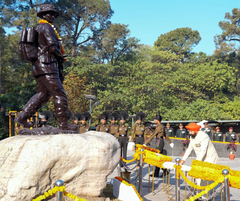 देहरादून 16 दिसम्बर। राज्यपाल लेफ्टिनेंट जनरल गुरमीत सिंह (से नि) ने मंगलवार को विजय दिवस के अवसर पर शौर्य स्थल, देहरादून में मातृभूमि की रक्षा हेतु अपने प्राणों का सर्वोच्च बलिदान देने वाले वीर शहीदों को पुष्पचक्र अर्पित कर श्रद्धांजलि दी। इस अवसर पर राज्यपाल ने उपस्थित सेवारत एवं पूर्व सैनिकों से भेंट कर उनसे संवाद किया तथा राष्ट्र की रक्षा में उनके अमूल्य योगदान की सराहना की। इस अवसर पर राज्यपाल ने 1971 के भारत-पाकिस्तान युद्ध की ऐतिहासिक, रणनीतिक एवं निर्णायक सैन्य विजय को स्मरण करते हुए कहा कि यह युद्ध भारत के सैन्य इतिहास में स्वर्णिम अध्याय है। भारतीय सशस्त्र बलों ने अद्वितीय शौर्य, साहस और कुशल रणनीति का परिचय देते हुए न केवल दुश्मन के 93 हजार सैनिकों को आत्मसमर्पण के लिए विवश किया, बल्कि पाकिस्तान के विभाजन के साथ एक नए राष्ट्र, बांग्लादेश के निर्माण का मार्ग भी प्रशस्त किया। राज्यपाल ने कहा कि हमारे सशस्त्र बलों की उत्कृष्ट रणनीति, कठोर प्रशिक्षण, सटीक योजना, अनुशासन, समर्पण और राष्ट्र के प्रति अटूट प्रतिबद्धता हम सभी के लिए प्रेरणा और मार्गदर्शक है। उन्होंने कहा कि 54 वर्ष पूर्व इस युद्ध में शहीद हुए एवं घायल हुए जवानों के परिवारों की देखभाल करना हम सभी की सामूहिक जिम्मेदारी है। विजय दिवस पर हमें यह संकल्प लेना चाहिए कि हम सदैव उनके परिवारों के सम्मान, सुरक्षा और कल्याण के लिए तत्पर रहेंगे। उन्होंने कहा कि आज भारत आधुनिकीकरण, तकनीकी नवाचार, भविष्य के युद्ध कौशल और सैन्य क्षमताओं के क्षेत्र में एक व्यापक परिवर्तन के दौर से गुजर रहा है। यह परिवर्तन हमारे सशस्त्र बलों की शक्ति और राष्ट्र की सुरक्षा को और अधिक सुदृढ़ करेगा। राज्यपाल ने कहा कि विजय दिवस केवल अतीत की विजय को स्मरण करने का दिन नहीं, बल्कि यह आत्ममंथन और संकल्प का अवसर भी है। उन्होंने कहा कि हमें भविष्य की चुनौतियों तथा आंतरिक एवं बाह्य सुरक्षा आवश्यकताओं के प्रति स्वयं को निरंतर सुदृढ़ और सजग बनाए रखना होगा। इस अवसर पर जीओसी सब एरिया, उत्तराखण्ड मेजर जनरल एम. पी. एस. गिल, संयुक्त मुख्य हाइड्रोग्राफर, रियर एडमिरल पीयूष पौसी सहित सेवारत और भूतपूर्व सैन्य अधिकारी, जेसीओ और जवान मौजूद रहे।