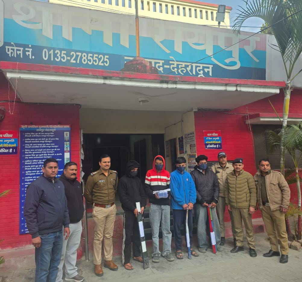 मंजीत सिंह राठौर पुत्र राजीव राठौर लक्कड़घाट, खदरी खडकमाफ, श्यामपुर ऋषिकेश, जिला देहरादून उत्तराखंड द्वारा कोतवाली डोईवाला पर प्रार्थना पत्र दिया कि वह 31 दिसंबर की देर रात्री एयरपोर्ट के पास थानो रोड से जा रहे थे, तभी उक्त स्थान पर स्विफ्ट कार में सवार कुछ अज्ञात लडकों द्वारा उनके साथ अकारण ही गाली-गलौच कर उन्हें जान से मारने की धमकी देते हुए उनकी कार संख्या यूके-06-जेड-6333 मे भी तोड फोड की गयी है। प्राप्त तहरीर के आधार पर कोतवाली डोईवाला पर तत्काल मुकदमा अपराध सख्या-03/2026 धारा 351(2)/352/324(4) बीएनएस के तहत अभियोग पंजीकृत किया गया। घटनाओं की गंभीरता के दृष्टिगत उनके अनावरण एवं अभियुक्तों की गिरफ्तारी हेतु एसएसपी देहरादून द्वारा तत्काल अलग-अलग टीमों का गठन कर आवश्यक दिशा-निर्देश दिये गये। गठित टीमों द्वारा रायपुर- थानो- ऋषिकेश रोड पर लगे विभिन्न सीसीटीवी कैमरों की फुटेजों का अवलोकन किया गया तथा मैन्युअल सुरागरसी/पतारसी करते हुए जानकारियां एकत्रित की गई तथा मुखबिर तंत्र को भी सक्रिय किया गया, पुलिस द्वारा लगातार किये जा रहे प्रयासो से मुखबिर से प्राप्त सूचना के आधार पर विगत दिवस चैकिंग के दौरान रायपुर स्टेडियम मार्ग से उपरोक्त घटनाओं में शामिल पारस पुत्र स्व. दीपक निवासी नंद कॉलोनी नत्थूवाला रायपुर देहरादून उम्र- 20 वर्ष, साहिल राणा पुत्र इद्रजीत सिंह राणा निवासी पदम निवास घोड़ा फैक्ट्री रोड बालावाला रायपुर देहरादून उम्र 20 वर्ष, प्रियांशू राणा पुत्र अब्बल सिंह राणा निवासी सोड़ा सरोली रायपुर देहरादून, उम्र19 वर्ष, अमन उर्फ एमी पुत्र देवेन्द्र सिंह बुटोला निवासी कृष्ण विहार, गुजरोवाली, रायपुर देहरादून उम्र 21 वर्ष को गिरफ्तार किया गया व 03 अन्य विधि-विवादित किशोर को पुलिस संरक्षण में लिया गया। अभियुक्तों के कब्जे से घटना में प्रयुक्त स्विफ्ट कार संख्या यूके-07-एएन-6270 बरामद की गई, जिसकी तलाशी लेने पर वाहन से 03 अदद बेसबॉल डंडे, 02 खुंखरी, 01 नकली पिस्टल, 01 रिफ्लेक्टर पिलर बरामद किया गया। अभियुक्तों से पूछताछ व प्राप्त साक्ष्यों के आधार पर अभियोग में धारा 109(1)/324(4)/126(2)/352/351(2), 3(5) बीएनएस एवं धारा 4/25/28 आर्म्स एक्ट की वृद्धि की गयी है। अभियुक्तों से पूछताछ में उनके द्वारा 31 जनवरी की देर रात्री लूट के इरादे से उक्त वाहनों को रूकवाकर वाहन चालकों के साथ मारपीट व वाहनों में तोडफोड की गई थी, परन्तु दोनो वाहन चालकों द्वारा मौके से अपने वाहनों को भगा देने के कारण वह अपनी योजना में सफल नही हो पाये। अभियुक्तों से पूछताछ में घटनाओं में शामिल 02 अन्य अभियुक्तों धीरज व सागर के नाम भी प्रकाश में आये, जिनके द्वारा अपनी ZEN गाडी से घटनाओं के दौरान घटनास्थल के आगे-पीछे रहते हुए पुलिस व आने जाने वाले लोगो के मूवमेंट पर नजर रखी 