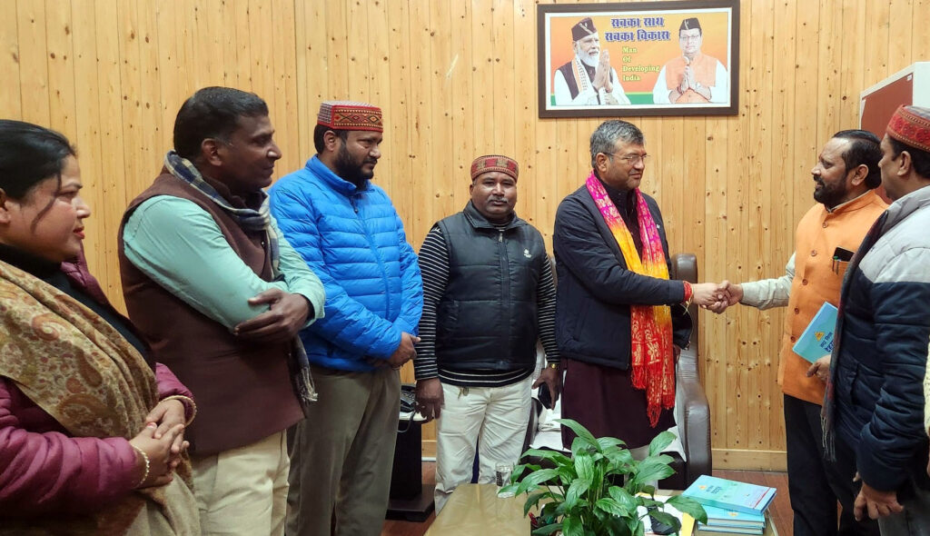 देहरादून, 03 जनवरी। राज्य सफाई कर्मचारी आयोग, उत्तराखण्ड सरकार के उपाध्यक्ष (राज्य मंत्री स्तर) भगवत प्रसाद मकवाना ने आज नगर निगम में महापौर सौरभ थपलियाल से मुलाकात की। इस मुलाकात के दौरान भगवत प्रसाद मकवाना ने नगर की विभिन्न व्यवस्थाओं और समाज के विभिन्न वर्गों की समस्याओं के संबंध में विस्तार से चर्चा की। साथ ही, सफाई कर्मचारियों के हितों और उनकी कार्यदशाओं में सुधार लाने हेतु सकारात्मक संवाद हुआ। इस अवसर पर राज्य सफाई कर्मचारी आयोग, उत्तराखण्ड सरकार के उपाध्यक्ष (राज्य मंत्री स्तर) भगवत प्रसाद मकवाना ने कहा की जनहित के कार्यों के लिए हम निरंतर संकल्पित हैं।
