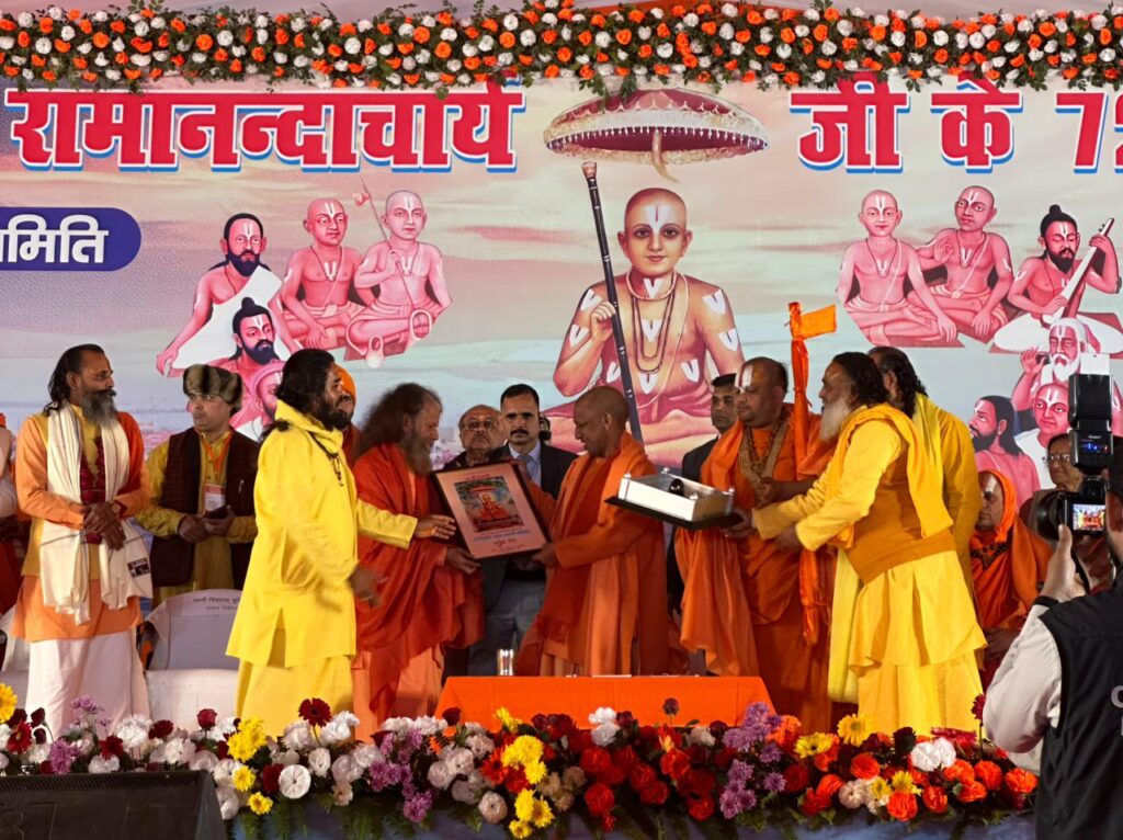 देहरादून/प्रयागराज, 10 जनवरी। सनातन संस्कृति, भक्ति परम्परा और राष्ट्रीय चेतना के पावन संगम के रूप में श्रीमद् जगद्गुरू रामानन्दाचार्य जी का 726वाँ प्राकट्य महोत्सव अत्यंत दिव्य, भव्य एवं गरिमामय वातावरण में सम्पन्न हुआ। यह ऐतिहासिक आयोजन जगद्गुरू महामण्डलेश्वर संतोषदास महाराज (सतुआ बाबा) के पावन शिविर में सम्पन्न हुआ, जहाँ श्रद्धा, साधना, सेवा और समर्पण की त्रिवेणी निरंतर प्रवाहित होती रही। इस महोत्सव की शोभा उत्तर प्रदेश के मुख्यमंत्री योगी आदित्यनाथ,परमार्थ निकेतन के अध्यक्ष स्वामी चिदानन्द सरस्वती तथा देश-विदेश से पधारे अनेक पूज्य संत-महात्माओं के पावन सान्निध्य से और अधिक बढ़ गई। संगम तट पर आयोजित माघ मेले की दिव्यता ने सम्पूर्ण वातावरण को आध्यात्मिक ऊर्जा से आलोकित कर दिया। कार्यक्रम का शुभारम्भ वैदिक मंत्रोच्चार, दीप प्रज्वलन एवं पुष्पांजलि अर्पण के साथ हुआ। संतों के प्रेरक उद्बोधनों ने श्री रामानन्दाचार्य जी के जीवन, दर्शन और भक्ति परम्परा की अमूल्य विरासत को जन-जन तक पहुँचाया। मुख्यमंत्री योगी आदित्यनाथ ने कहा कि श्री रामानन्दाचार्य जी ने भक्ति को जनआन्दोलन बनाकर सामाजिक समरसता और राष्ट्रबोध का मार्ग प्रशस्त किया। आज का उत्तर प्रदेश उपद्रव नहीं, उत्सव का प्रदेश बन चुका है-विकास और विरासत के समन्वय का जीवंत उदाहरण।
