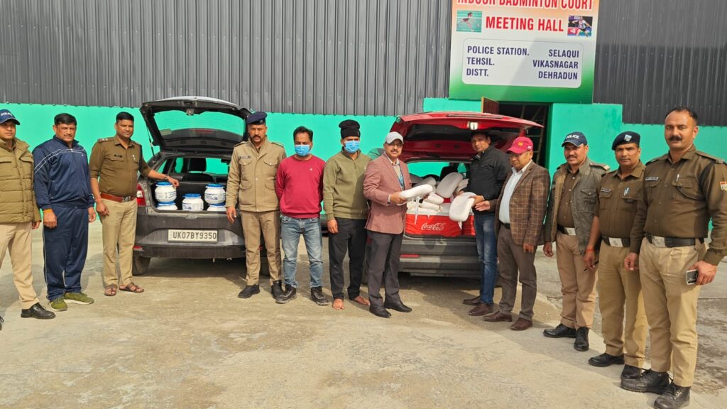 एसएसपी देहरादून अजय सिंह द्वारा सभी अधीनस्थों को नियमित रूप से मिलावटी खाद्य पदार्थों की कालाबाजारी तथा विक्रय में लिप्त व्यक्तियों पर लगातार सतर्क दृष्टि रखते हुए प्रभावी कार्यवाही के निर्देश दिए गए हैं। उक्त निर्देशों के क्रम में थाना सेलाकुई पुलिस द्वारा गोपनीय सूचना पर आज सेलाकुई बाजार में चैकिंग के दौरान माया देवी यूनिवर्सिटी के पास धूलकोट तिराहे से सेलाकुई बाजार की और तेज गति से आती हुई कार संख्या यूके 07 एफएच 7883 ब्रेजा लाल रंग को एवं कार संख्या यूके 07 बी वाइए 9350 बलेनो को पुलिस टीम द्वारा रोककर चैक किया गया तो कार संख्या यूके 07 एफएच 7883 में तथा कार संख्या UK07BY 9350 में भारी मात्रा में पनीर व दही रखी गयी थी। जिसके सम्बन्ध में वाहन चालकों द्वारा उक्त पनीर को नकली होना बताया गया, जिस पर पुलिस टीम द्वारा वरिष्ठ खाद्य आपूर्ति अधिकारी को अवगत करते हुये उनकी टीम को मौके पर बुलाया गया जिनके द्वारा उक्त पनीर एवं दही की मौके पर सेंम्पलिंग की गयी तो उक्त पनीर एवं दही का नकली होना पाया गया। जिस पर पुलिस एवं खाद्य विभाग की टीम के द्वारा आवश्यक विधिक कार्यवाही करते हुये नकली पनीर एवं नकली दही को नष्ट किया गया। अभियुक्तों के विरूद्ध थाना सेलाकुई में सम्बन्धित धाराओं में अभियोग पंजीकृत कर दोनों वाहनों चालकों को गिरफ्तार कर उनके वाहनों को सीज किया गया।