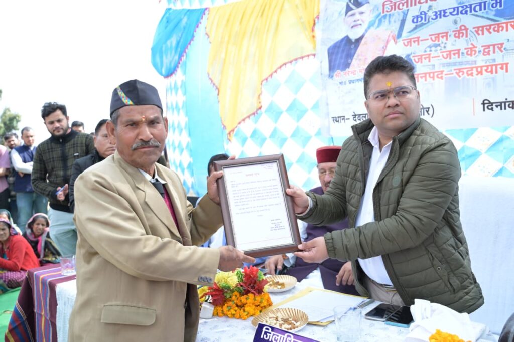 रुद्रप्रयाग। मुख्यमंत्री उत्तराखण्ड के निर्देशानुसार आम जनमानस को केंद्र एवं राज्य सरकार की जनकल्याणकारी योजनाओं का लाभ एक ही स्थान पर उपलब्ध कराने तथा जनसमस्याओं के त्वरित एवं प्रभावी समाधान के उद्देश्य से प्रदेशभर में “जन-जन की सरकार, जन-जन के द्वार” अभियान संचालित किया जा रहा है। इसी क्रम में जिलाधिकारी रुद्रप्रयाग विशाल मिश्रा के कुशल नेतृत्व में जनपद की 27 न्याय पंचायतों में बहुउद्देशीय शिविर आयोजित किए जा रहे हैं। इसी कड़ी में आज तहसील बसुकेदार के पूर्वी बांगर क्षेत्र के देवलाणी मैदान बक्शीर में “प्रशासन गांव की ओर” अभियान के तहत बहुउद्देशीय शिविर आयोजित किया गया। शिविर की अध्यक्षता जिलाधिकारी रुद्रप्रयाग विशाल मिश्रा ने की। कार्यक्रम में विशिष्ट अतिथि के रूप में विधायक रुद्रप्रयाग भरत चौधरी भी सम्मिलित हुए। कार्यक्रम स्थल पर पहुंचकर जिलाधिकारी ने विभिन्न विभागों द्वारा लगाए गए स्टॉलों का निरीक्षण कर व्यवस्थाओं का जायजा लिया। प्राथमिक विद्यालय भुनालगाँव के विद्यार्थियों द्वारा उपस्थित अधिकारियों जनप्रतिनिधियों का सांस्कृतिक प्रस्तुति देकर स्वागत किया गया। वही पूर्वी बांगर निर्माण समिति अध्यक्ष शिव लाल आर्य द्वारा सम्पूर्ण बांगर क्षेत्र की ओर से विधायक रुद्रप्रयाग भरत चौधरी तथा जिलाधिकारी को बधाई पत्र देकर सम्मानित किया गया। शिविर के दौरान पिछले वर्ष अगस्त में आई आपदा के दौरान जिन लोगों के वाहनों की क्षति हुई थी उनको आज मुख्यमंत्री राहत कोष से सहायता धनराशि के चेक भी विधायक एवं जिलाधिकारी के माध्यम से वितरित किए गए। शिविर में जिलाधिकारी द्वारा उपस्थिति जनसमूह को नशामुक्त एवं स्वच्छता की शपथ भी दिलाई गई। शिविर में उद्यान एवं खाद्य प्रसंस्करण, कृषि, पशुपालन, डेयरी, मत्स्य, उद्योग, समाज कल्याण, पंचायतीराज/ग्रामीण विकास, स्वास्थ्य विभाग (आयुष्मान आरोग्य शिविर), राजस्व विभाग, महिला सशक्तीकरण एवं बाल विकास, पूर्ति विभाग सहित अनेक विभागों ने स्टॉल लगाकर ग्रामीणों को योजनाओं की जानकारी दी तथा पात्र लाभार्थियों को मौके पर ही लाभान्वित किया। शिविर के माध्यम से अनेक ग्रामीणों को विभिन्न योजनाओं का लाभ दिया गया। वृद्धावस्था, विधवा एवं दिव्यांग पेंशन, आयुष्मान भारत योजना, राशन कार्ड, आय/जाति/निवास प्रमाण पत्र, स्वरोजगार एवं आजीविका योजनाओं सहित अनेक समस्याओं का प्राथमिकता के आधार पर समाधान किया गया। साथ ही विभागीय अधिकारियों ने मंच के माध्यम से योजनाओं की जानकारी एवं आवेदन प्रक्रिया से ग्रामीणों को अवगत कराया।