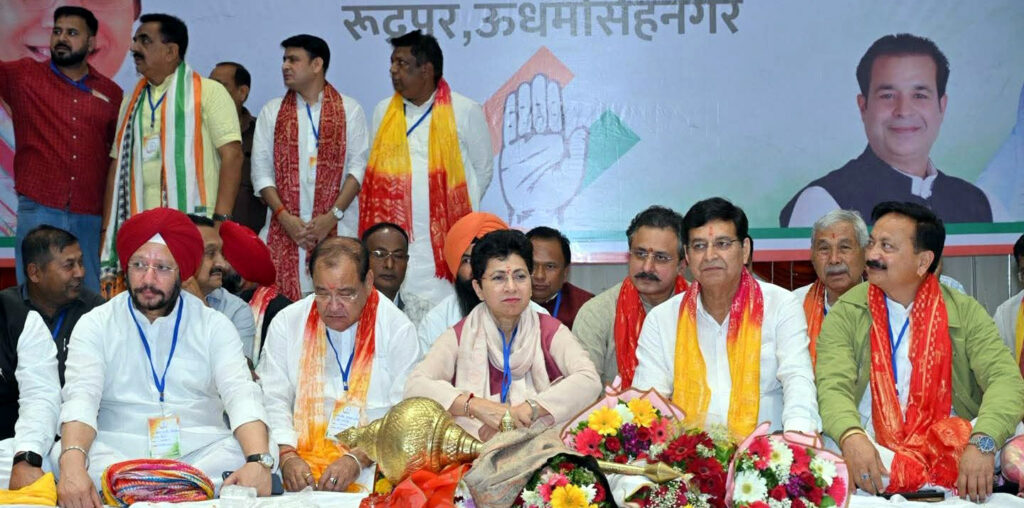 रुद्रपुर। कांग्रेस की केंद्रीय प्रभारी पूर्व मंत्री व सांसद उत्तराखंड कांग्रेस प्रभारी कुमारी शैलजा पाँच दिवसीय उत्तराखंड दौरे के अंतर्गत रुद्रपुर (जनपद उधमसिंह नगर) में आयोजित जिला स्तरीय कार्यकर्ता सम्मेलन में शामिल हुई। इस दौरान आगामी चुनावों के मद्देनज़र पार्टी कार्यकर्ताओं के साथ विभिन्न राजनीतिक, सामाजिक एवं संगठनात्मक विषयों पर सार्थक चर्चा करते हुए सभी कार्यकर्ताओं का आह्वान करते हुए एकजुट होकर चुनावी रण में उतरने की अपील की। आज उत्तराखंड में भाजपा सरकार हर मोर्चे पर विफल साबित हो चुकी है और प्रदेश की जनता परिवर्तन के रूप में कांग्रेस की सरकार चाहती है। इस अवसर पर उत्तराखंड प्रदेश कांग्रेस के सभी वरिष्ठ नेता, पदाधिकारी एवं कार्यकर्ता उपस्थित रहे।