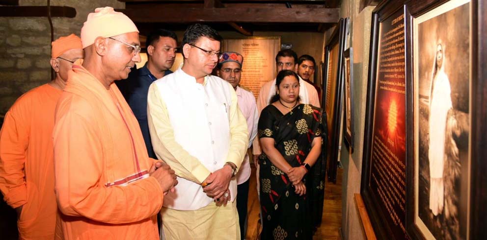 देहरादून 14 जुलाई। चंपावत दौरे पर पहुंचे मुख्यमंत्री पुष्कर सिंह धामी गुरुवार को लोहाघाट स्थित अद्वैत आश्रम मायावती पहुंचे। अद्वैत आश्रम मायावती में मुख्यमंत्री पुष्कर सिंह धामी ने ध्यान केंद्र एवं स्वामी विवेकानंद पर आधारित म्यूजियम का निरीक्षण किया। मुख्यमंत्री पुष्कर सिंह धामी ने कहा कि लोहाघाट की गोद में बसा आश्रम एक रमणीक स्थान है। मायावती आश्रम में पुण्य आत्माओं का वास है यहां आना सौभाग्य की बात है। जिसकी कल्पना स्वामी विवेकानंद जी ने की थी, वह आश्रम आज भी भव्य और दिव्य दिखता है । यह शांति और ध्यान का केंद्र है। उन्होंने कहा स्वामी विवेकानंद जी के सपनों का भारत आज प्रधानमंत्री श्री नरेंद्र मोदी जी नए भारत के रूप में पूरा कर रहे हैं। आज प्रधानमंत्री श्री नरेंद्र मोदी के नेतृत्व में भव्य दिव्य केदारपुरी एवं बद्रीनाथ धाम में मास्टर प्लान का कार्य चल रहा है। इस दौरान उनके साथ स्वामी सहृदानंद जी महाराज , स्वामी एकदेवानंद जी महाराज, स्वामी विरेशानंद जी, जिला पंचायत अध्यक्ष ज्योति राय, अध्यक्ष वन निगम श्री कैलाश गहतोड़ी, एवं अन्य लोग मौजूद रहे।